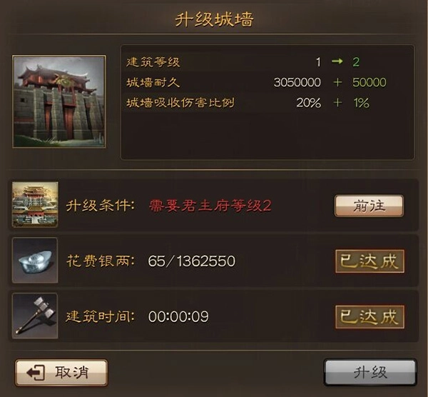一开始我不太理解“城墙耐久”这个说法,不过常泡论坛的一个朋友跟我解释,当角色被攻击时,城墙就能发挥作用,它会帮你分担一部分承受的伤害,升级城墙其实就等于增强了自己这边的生存能力。要是情况真的是这样,那我肯定会优先选择升级城墙,而且会尽量把城墙等级提得高一些——毕竟比起搞装备,升级城墙明显更划算。