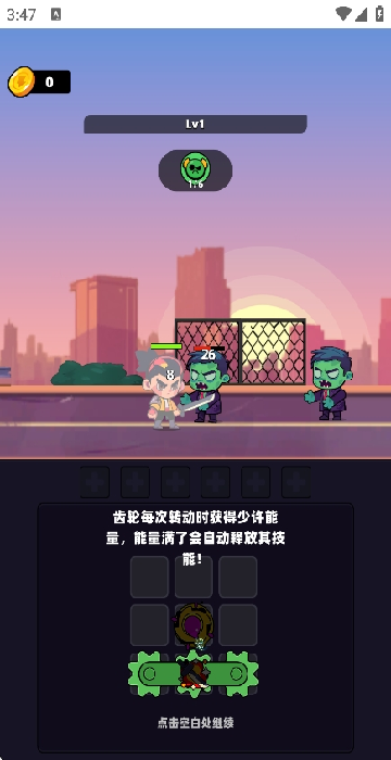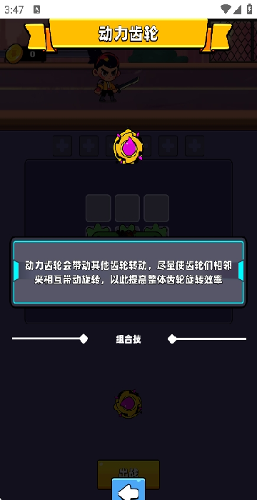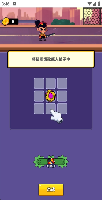 1、启动游戏后无需登录就能直接进入第一关开始挑战,只需把下方的技能齿轮拖拽到方框里即可。
