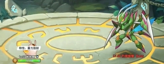 2、先用粘粘蜗使用“重力放射”特性降低烈锯螳螂的抗性,使用攻击技能压低敌人血线。