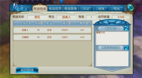 - 公告管理:能修改并发布帮派公告与活动公告;