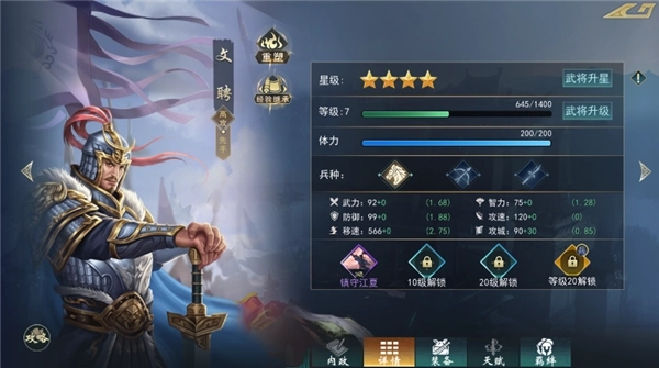 提高武将星级,可以提升武将的基础属性,不同的武将提升的基础属性略有不同。