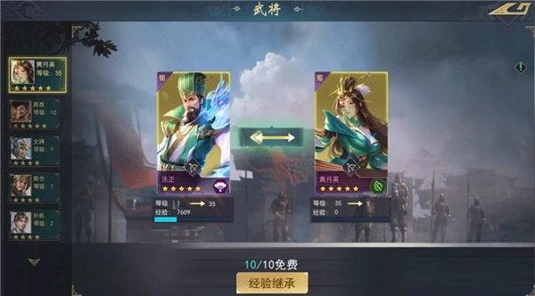 为配置强有力的军队,主公可以选择将当前武将的经验置换给你想要的武将,完成经验继承。