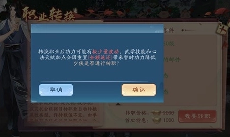 转换职业后,由于属性值的计算方式不同,可能会出现极少量的功力值波动;而武学技能升级以及心法天赋加点方面,会因为重置(重置后会全额返还相关资源)导致功力出现暂时性的降低。