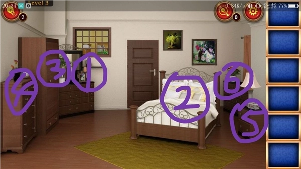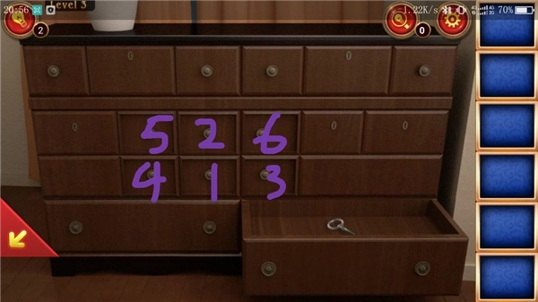 5、把桌子上的字条跟前面收集的字条合并得到数字281,再收集桌子上的钥匙(如上图所示)。