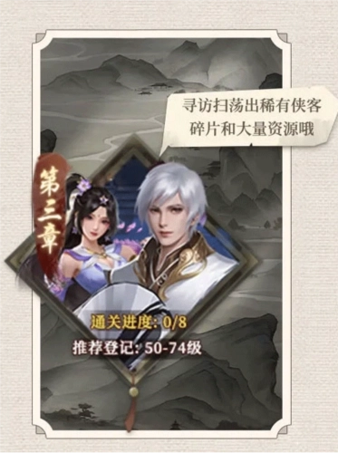 通关进度:0/8,推荐登记:50-74级,剧情界面内的精英挑战关卡同样能获得大量经验提升等级,更能产出珍贵稀缺的绝学进阶资源。精英挑战关卡通关后可以反复扫荡,不断获取自己想要的资源。