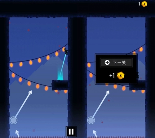1、玩家们在跳跃的时候有时手势滑动不正确的话可能没办法快速的上升,甚至可能会往下,这个时候在半空中玩家们就要注意改变忍者的前进方向,并且让他移动到更高的地方去才行。