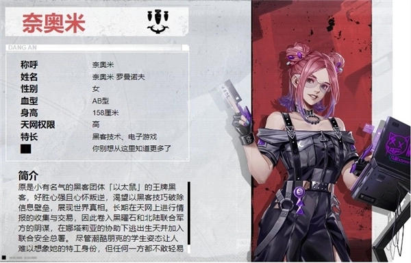 作为初始主角团成员之一,和迪拉卡、叶夫根尼相比,他/她整体显得比较中庸,没什么特别突出的特点。