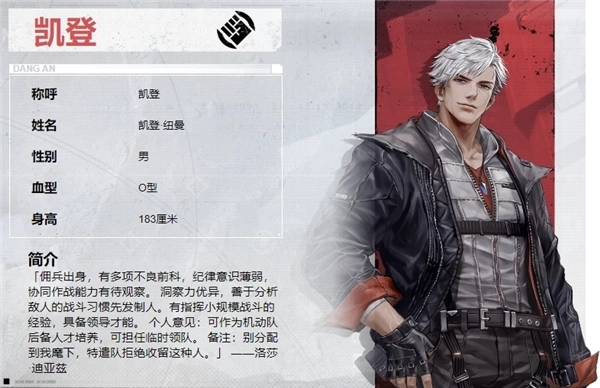 兼具格斗家与突击手的特性,不过伤害输出能力不算突出。技能设定倾向于枪械与拳套混搭的武器组合,但自身缺少保命技能,而这种混搭武器配置又要求玩家上前线冲锋,存在类似凯登使用一、二技能后“手没了”的操作困境……