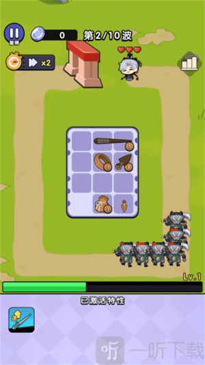 背包塔防行动是石家庄凯益有限公司制作并发行的策略塔防游戏,玩法简单又有趣。游戏会给玩家一个背包,里面有不少可使用的物品,把这些物品合成能提升武器的战斗力,而且顺利通关后还能选一个增益类技能。