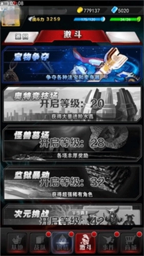 1、独特的养成系统:玩家可以通过各种方式提升自己的奥特曼角色,包括升级、装备强化和技能提升。