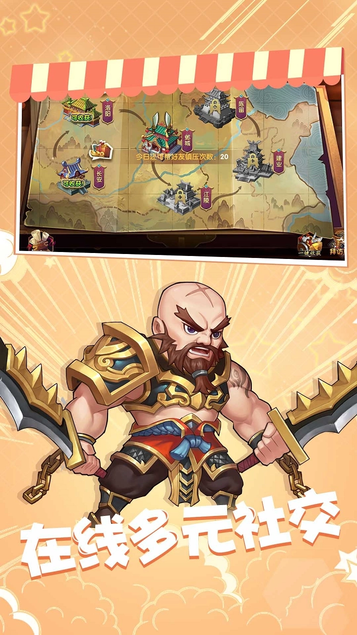 复古画风营造出最热血的战斗快感,借助招募玩法与各类活动,能够获取众多强力军官,助你在三国乱世里逐鹿中原。