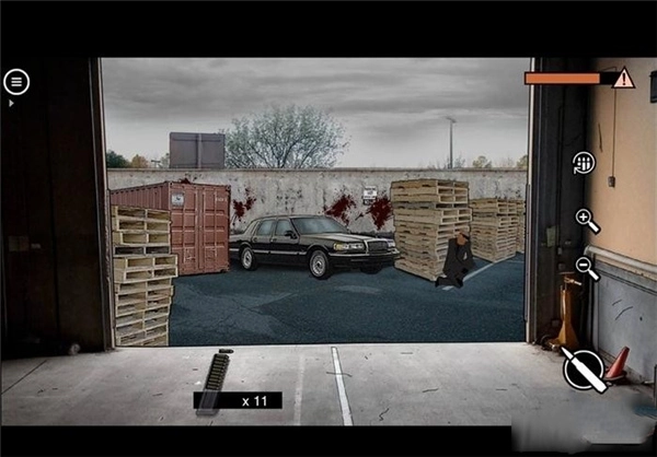 解决第二个敌人后,他的尸体会撞到轿车方向盘,导致喇叭持续鸣响。此时第三个敌人出现,玩家需快速把准星移到左侧靠墙处,趁敌人转身的刹那将其击倒。要是让他转过身看到同伴尸体,关卡就会失败。对具体步骤不熟悉的玩家,可以参考下方小编提供的示意图。