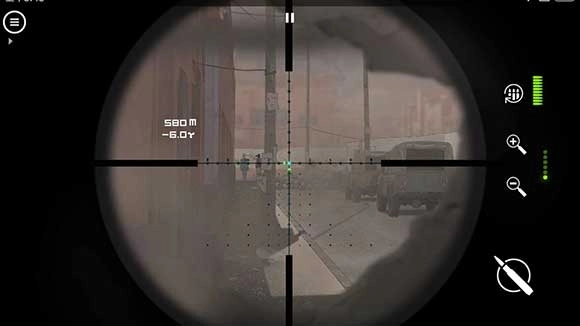 任务玩法:本关会引入一个新的道具装备——测距仪。测距仪安插在狙击枪的瞄准镜上,因为玩家与敌人的距离超过100米之后,射出的子弹会因为空气阻力的原因下坠。安装测距仪之后,绿点的位置才是正确的子弹射击部位。测距仪可以在道具商城中购买获得,价格不贵。