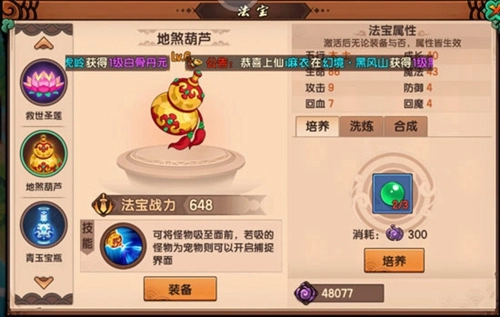 总的来说,主要培养古剑、莲花、瓶子这三件法宝就可以了,它们是相当实用的。