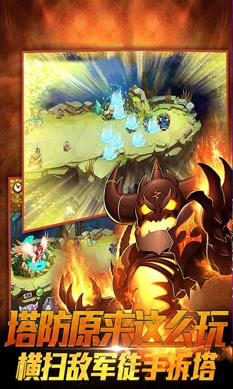 1.除保留塔防游戏的核心玩法外,还额外加入了可成长的英雄系统与防御建设系统。
