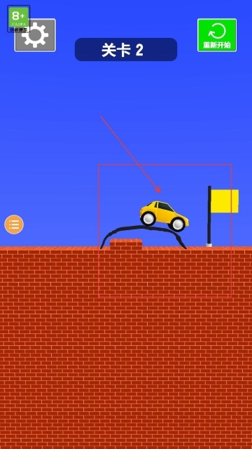 3、当玩家进入关卡2后,需要绘制出恰当的路线,帮助小车避开障碍、成功驶向旗帜,这一过程将考验玩家绘制路径的合理性。