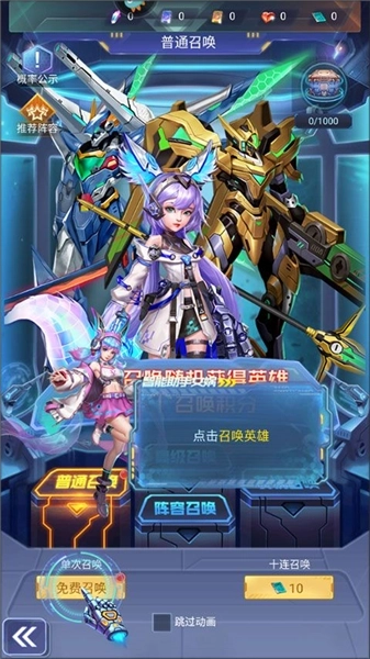 1、点击召唤英雄进行队伍集结。