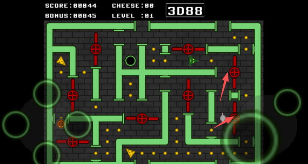 1、借助左下角的方向键操控老鼠移动,让它能灵活地在迷宫的各个角落穿梭。