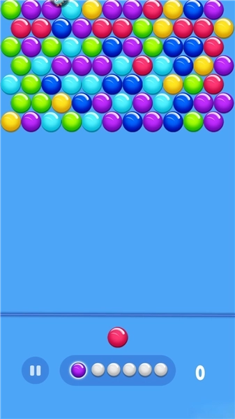2、泡泡龙模式,玩家将小球发射上去,相同颜色即可消除。