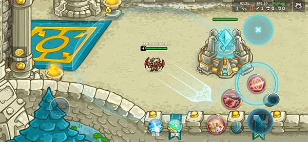 2、游戏玩法为横向地图单路推塔模式,摧毁敌⽅基地获胜,同样具备英雄等级成长、装备等MOBA核心系统。
