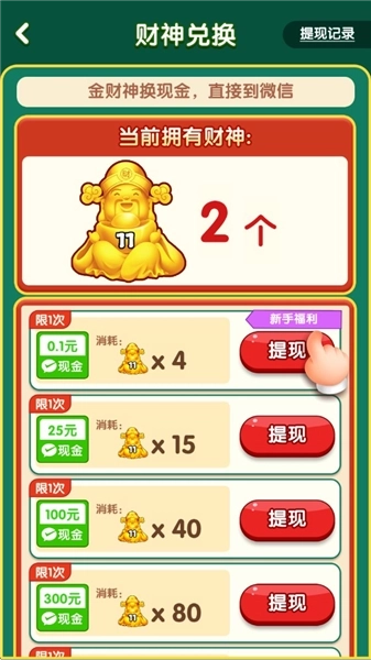 3、可以通过闯关持续提高兑换红包的比例,闯过的关卡越多,获得的收益就越丰厚!