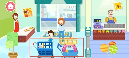 提供有超市购物场景,家长可带领宝宝进入到超市场景中进行商品选购