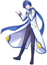 那位留着深蓝色头发的男歌手,穿着蓝白拼色的大衣,还围着一条蓝色长围巾。他的歌声清新质朴,同时又带着成年男性独有的浑厚低音。