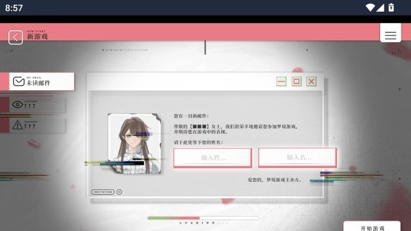2、点击“开始游戏”后,玩家需创建专属角色,设定名字并进入梦境世界。角色名不只是你的代号,在部分剧情里还会影响密码线索与剧情走向,取名时请务必谨慎!