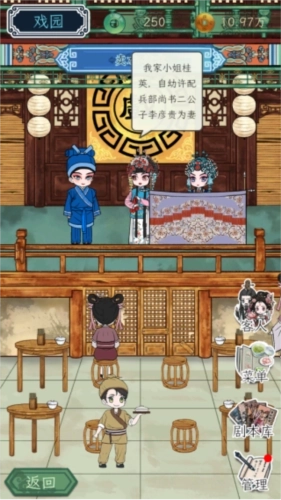 《继承了一座戏园子》是一款画面充满古风韵味的趣味模拟经营游戏。玩家将穿越回古代,接手一座荒芜破败的戏园子,目标是将其打理成声名远扬的优质戏园。游戏中提供了多款Q萌可爱的角色供玩家选择,同时巧妙融入了丰富的戏曲元素,不仅为游戏增添了独特乐趣,也让整体玩法更加生动有趣,彻底摆脱了枯燥感,因此深深吸引了大批游戏爱好者。