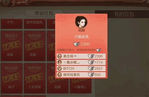养成个习惯,每天上线先去帮会瞅一眼红包,攒着攒着就多啦,嘿嘿。