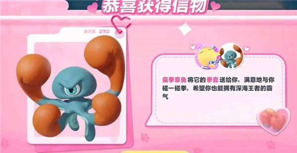 带着蓝拳章鱼去擂台参赛,多打几局就能拿到信物拳套。需要打的场数是随机的,每个人情况不同,建议大家多尝试几次。