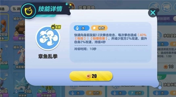 它的专属技能是章鱼乱拳,能朝着身前的敌人发动12次拳击,不仅能造成高额伤害,还会削减敌人的攻击速度。