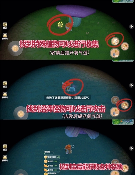 左上角氧气值是公用的!所以如果附近有小怪物或特殊植物~记得进行收取!提升氧气值~