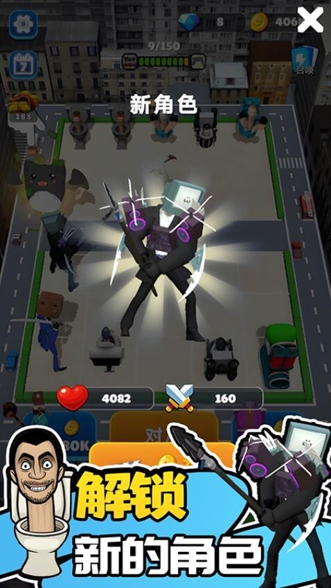 3、马桶人战士可随意选用搭配,组建强力阵容来应对各类角色,轻松体验独特的对抗碰撞,全程无限制。