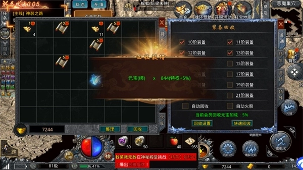 4、超高爆率搭配拉满的攻速,一心为万千传奇兄弟打造真正的免费打金服。