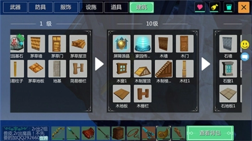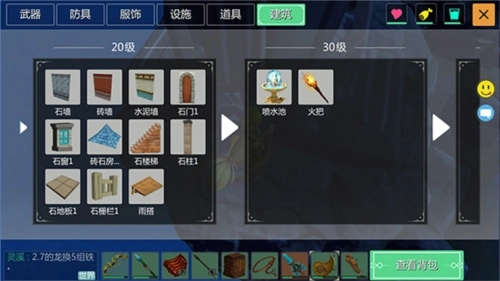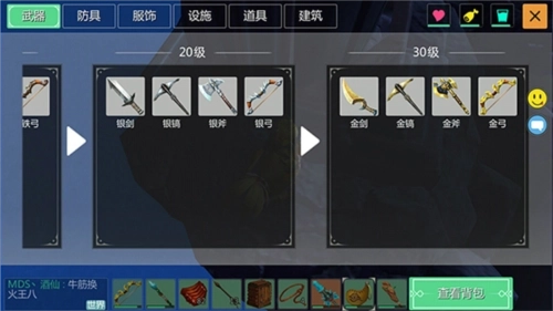 2、下面这些图片依次展示了玩家在1级、10级、20级、30级时能够制作的对应武器道具