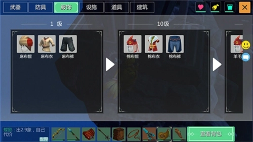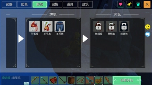 3、以下是玩家在1级、10级、20级、30级时能够解锁制作权限的防具