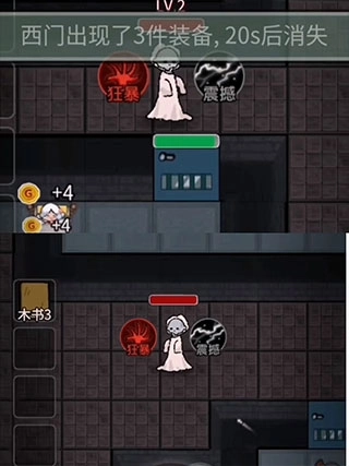 4、作为猎梦者,我们主要通过挠门和捡装备升级,猎梦者自带狂暴和震撼两个技能(要等这两个技能变红)。我们可以通过捡装备来提升自己的攻击力、攻速、防御力(要注意每次只能选择其中的一件捡)。方向定位是:左西右东。