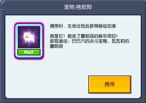 这是你的一只狗,携带时,能让你在生命值过低时加快移动速度。当你生命过低时一般需要什么,当然是逃跑了。那么这只拷皮狗无疑能增加你的生存几率,可爱的白色小狗在游戏中摇尾卖萌,铲屎官们注意啦。