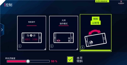 4、你仍可以切换至“点击转弯”操作并自定义屏幕按钮的位置,也可以使用“倾斜转弯”,像专业车手那样驰骋赛道;