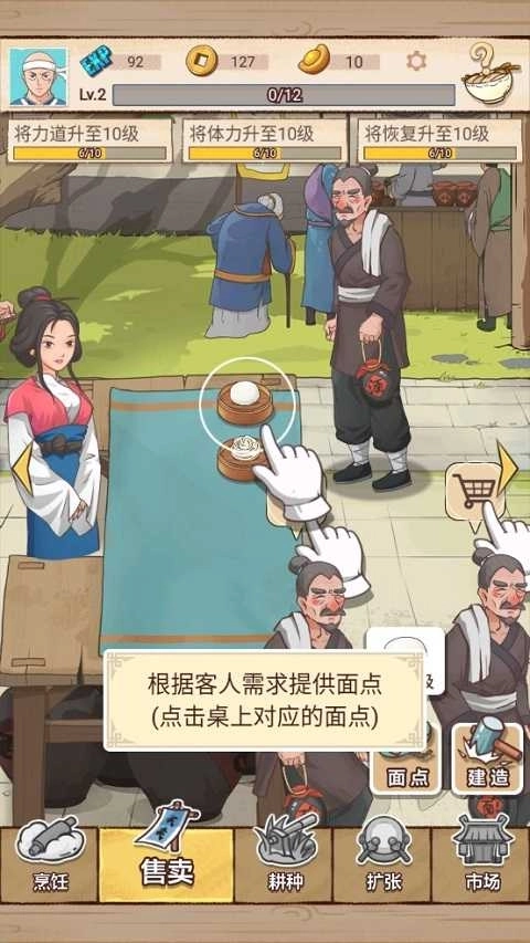 面点大师游戏以轻松上手见长,没有繁复教程,只需专注点击屏幕,便能驱动整个面点生产线运转。其核心循环简洁有力:点击产面点→出售换资源→升级属性→解锁新内容。这种设计让碎片时间也能收获充实感。