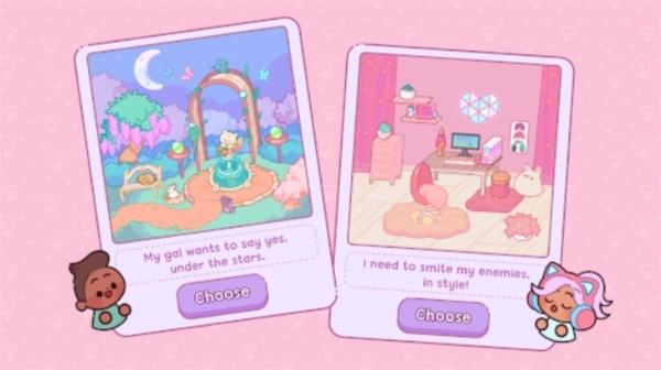 1、采用可爱风格的画面呈现,色彩搭配鲜艳而丰富,家具与装饰品的模型制作得十分精致,场景中各类细节也颇为饱满,能为玩家带来愉悦的视觉体验。
