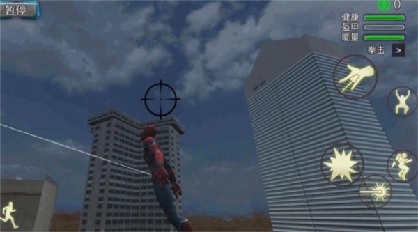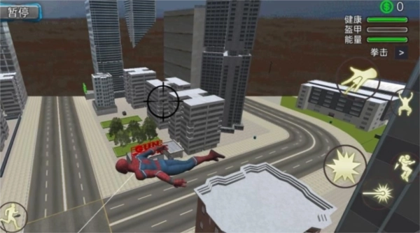 1、操控角色借助蜘蛛丝在城市建筑间穿梭移动,迅速抵达任务地点;