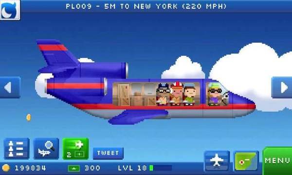 《Pocket Planes》是NimbleBit于本周新推出的航空题材经营游戏。这款游戏的风格和NimbleBit此前推出的《Tiny Tower》十分相近,均采用像素风格的画面,无论是像素风格的飞机、机长还是旅客,都给人一种复古的感觉。