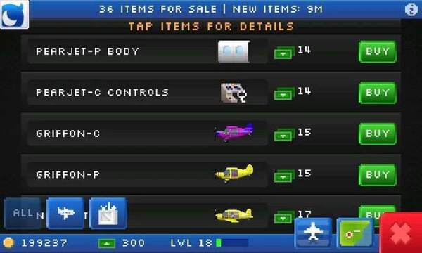飞机飞行时的画面设计得比较简单,很难让人长时间保持关注的兴趣。即便切换到航线图界面,情况也大致类似。若不是飞行过程中会随机掉落金币(大金币价值10金钱,小金币仅1金钱)和BUX这类能带来额外收入的奖励,恐怕没多少玩家愿意持续盯着屏幕。不过,游戏虽然采用复古的像素画风,玩法却并不陈旧——玩家需要处理各种航空运营难题:比如拓展航线覆盖的城市、对机场进行改造升级、购买或制造新飞机等。这些丰富的经营内容,都会在《Pocket Planes》的像素世界中完整呈现给玩家。