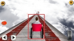 3、驾驶【红色轮椅】载具冲上坡道,保持平衡并持续前进,完成坡道行驶的挑战环节。