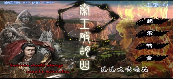 今天想给大家推荐的是落落大方创作的《秦王破胡曲》。我已经取得了作者的授权,不过因为个人能力有限,作品里难免存在一些不够完善的地方。考虑到新手玩家的体验,目前我给它添加了一个割草模式的引擎,后续的完善还需要一定时间,希望大家能够理解并耐心等待。