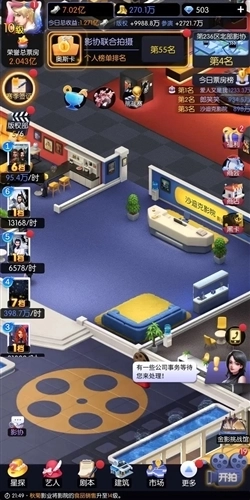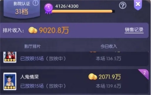 3、玩家可利用影院每日盈利的资金达成不同档位的评价,进而获取能提升电影票房的粉丝。