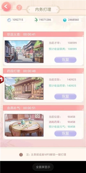 成为庶嫔之后,对血气的需求会进一步增加。举个例子,假设你的战斗力达到10W,但血气值只有4W,那么很遗憾,在推进主线剧情时,你实际能调用的有效战力就只有4W。而提升血气最经济实惠且直接的途径,就是通过内务系统来实现。