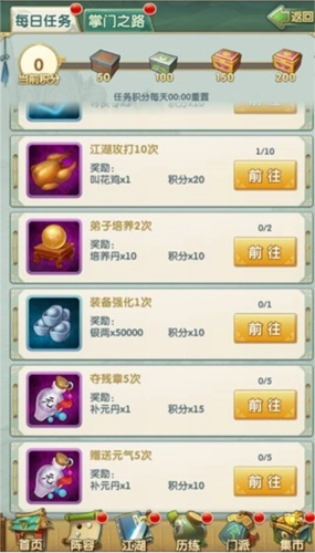 持续刷新江湖星数的记录,就能在掌门之路活动里领取叫花鸡。要是某个关卡没办法3星通过,别反复去挑战,这时候得去培养弟子或者强化装备来提升功力,之后再回来打,尽量一次3星过关,这样能让体力得到最充分的利用。